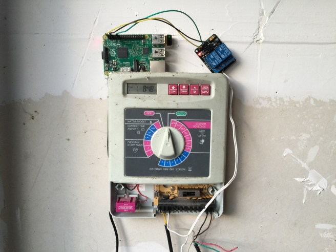 This was a fun little project, the wiring being the messiest part, but it’s worked well for the past month without intervention from me.  Of course it’s end of summer and fall now so I don’t need this any longer but it’s all ready for next year!  The next thing will be to integrate it with the HomeKit project so that I can see it in the new Home app and know when it’s working (with pop-ups on the phone).